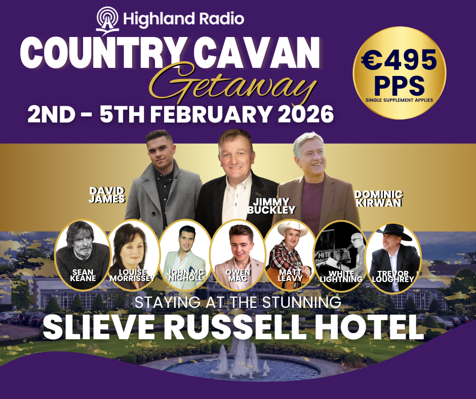 Join us on the Highland Radio Cavan Country Getaway in the Slieve Russell Hotel, Cavan on Monday 2nd Feb – Thurs 5th Feb 2025.